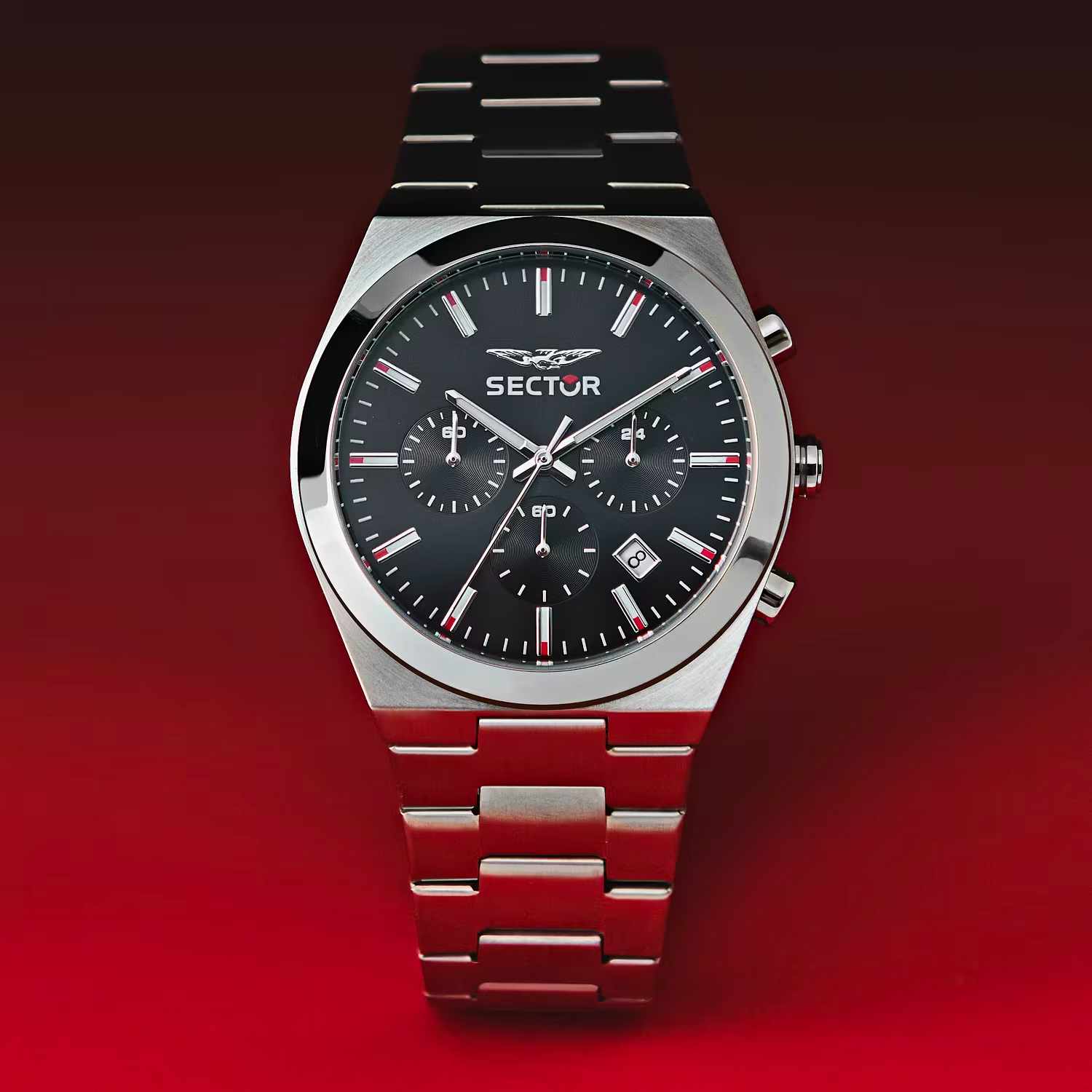 SECTOR C300 - Da uomo, cassa acciaio 42mm, quadrante nero, water resistant 5 atm.